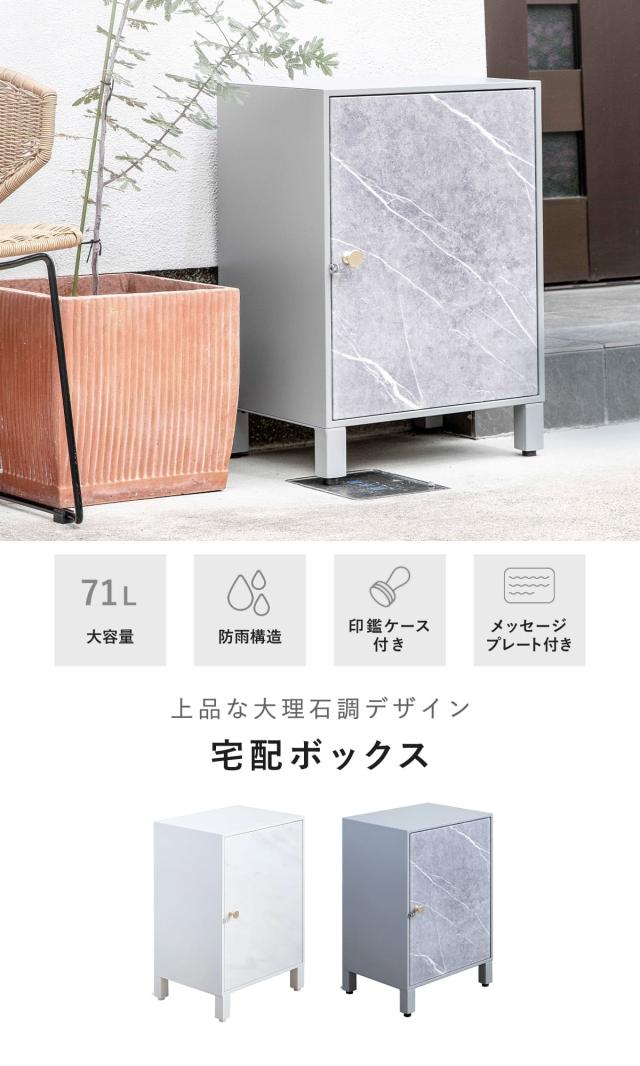 宅配ボックス 大理石調 ( 宅配 ボックス 一戸建て用 据え置き マーブル 置き配用ボックス 前開き 1段 大容量 宅配BOX 戸建 屋外 ポスト 荷物受け メール便 宅配便 メールボックス 戸建て おしゃれ )