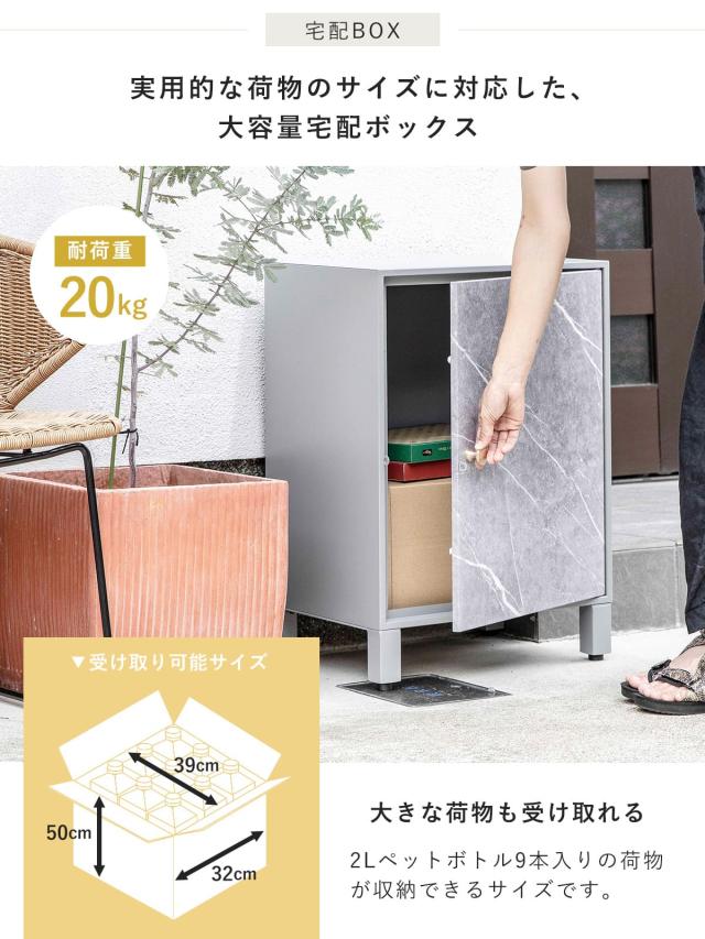 実用的な荷物に対応した大容量サイズの大理石調の宅配ボックス