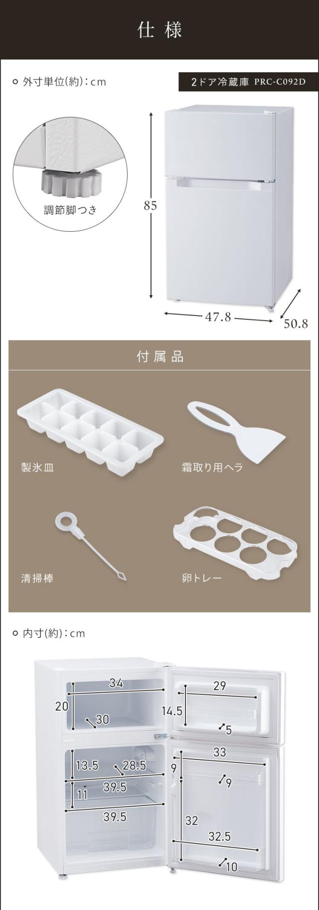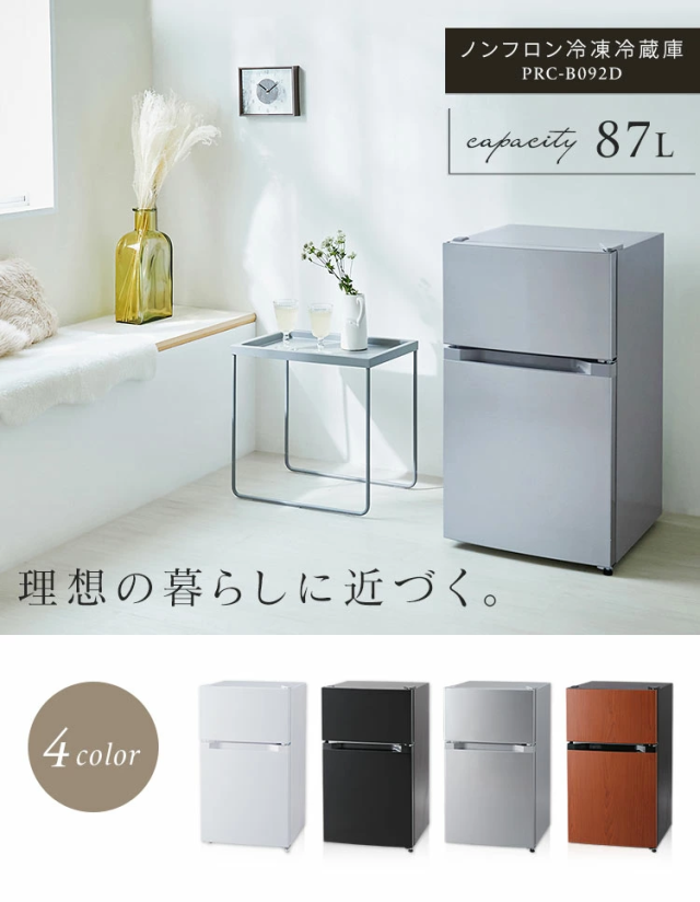 冷蔵庫 一人暮らし 小型 2ドア ノンフロン冷凍冷蔵庫 87L PRC-B092D 冷蔵庫 コンパクト パーソナル 右開き シンプル 送料無料