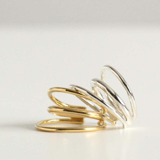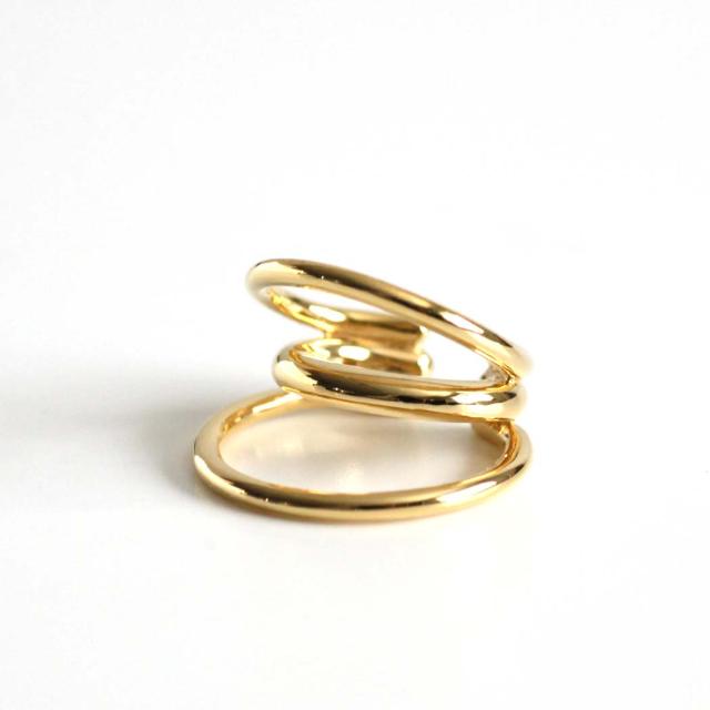 ワイヤーをランダムに巻き付けたような、ボリュームのある3連オープンリング。