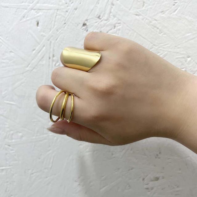 真ん中のリングをオーバーサイズのリングで挟んだような形状で、