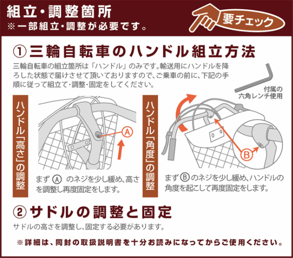 | 組立・調整箇所 | 一部組立・調整が必要です |