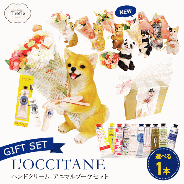 ロクシタン ギフト 人気 ロクシタンのハンドクリーム ギフト 送料無料 アニマルブーケ セット 誕生日 可愛い おしゃれ 選べる ロクシタンハンドクリーム ラッピング無料 プレゼント 女性 プレゼント 結婚記念日 犬 ドッグ ネコ キャット パンダ ウサギ ラビット クマ ベアー