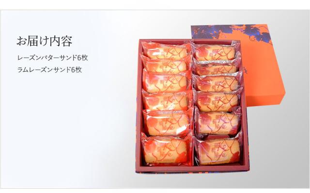 ○内容量:レーズンバターサンド6枚、ラムレーズンサンド6枚