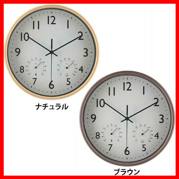 掛時計 温湿度計付 ミエル 直径25cm 28198 全2色 時計 掛け時計 静音 温湿度計付き シンプル インテリア 電池式 ナチュラル ブラウン 見やすい 【int】