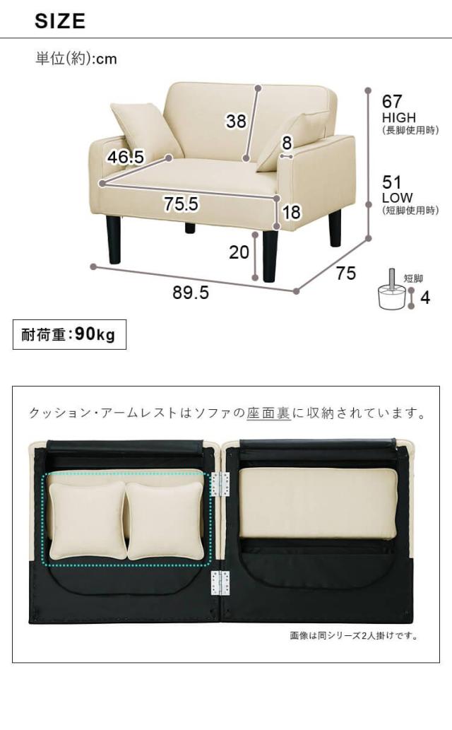 幅約89.5×奥行約75.0×高さ約67.0(ロータイプの高さ約51.0)