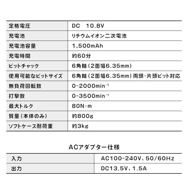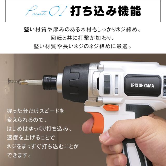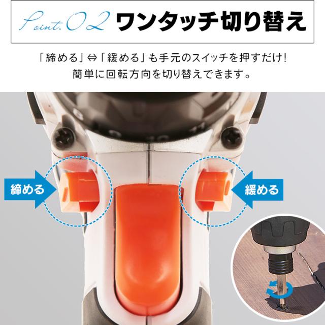 回転と打撃による強力なトルクで、厚みのある材質も素早くネジ締めができます。