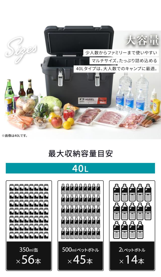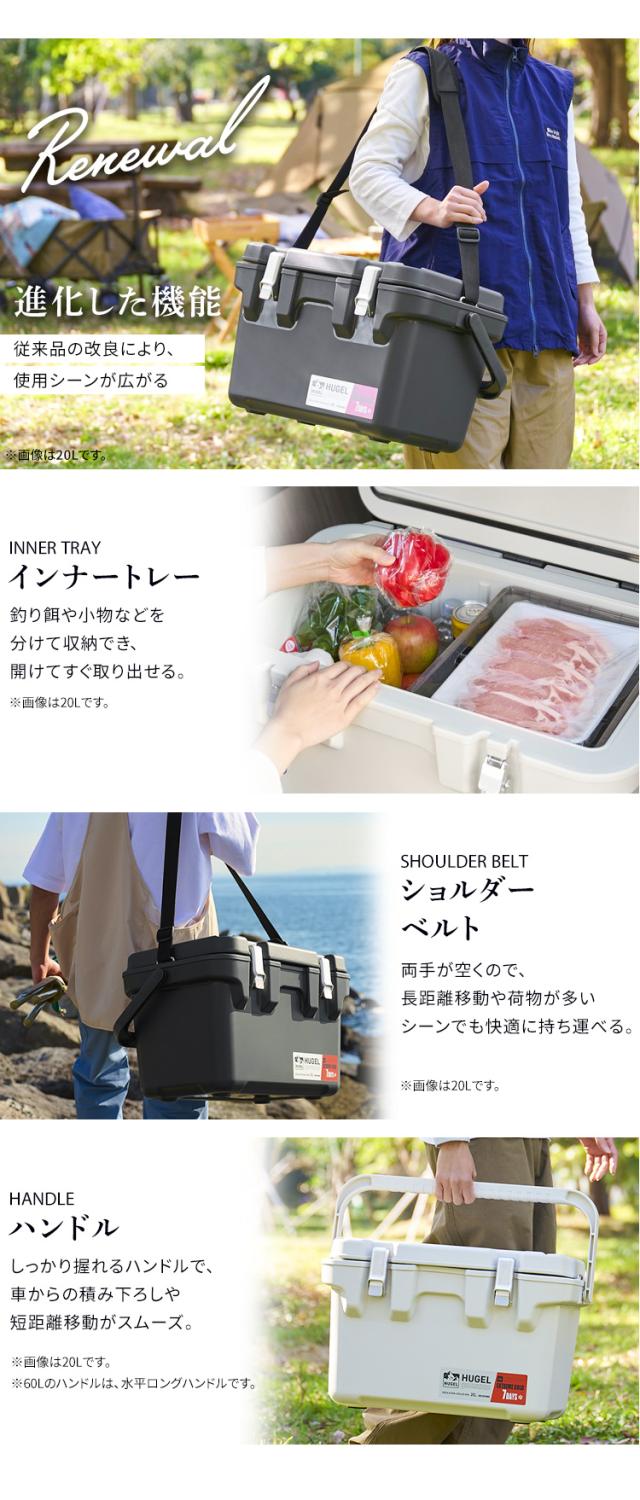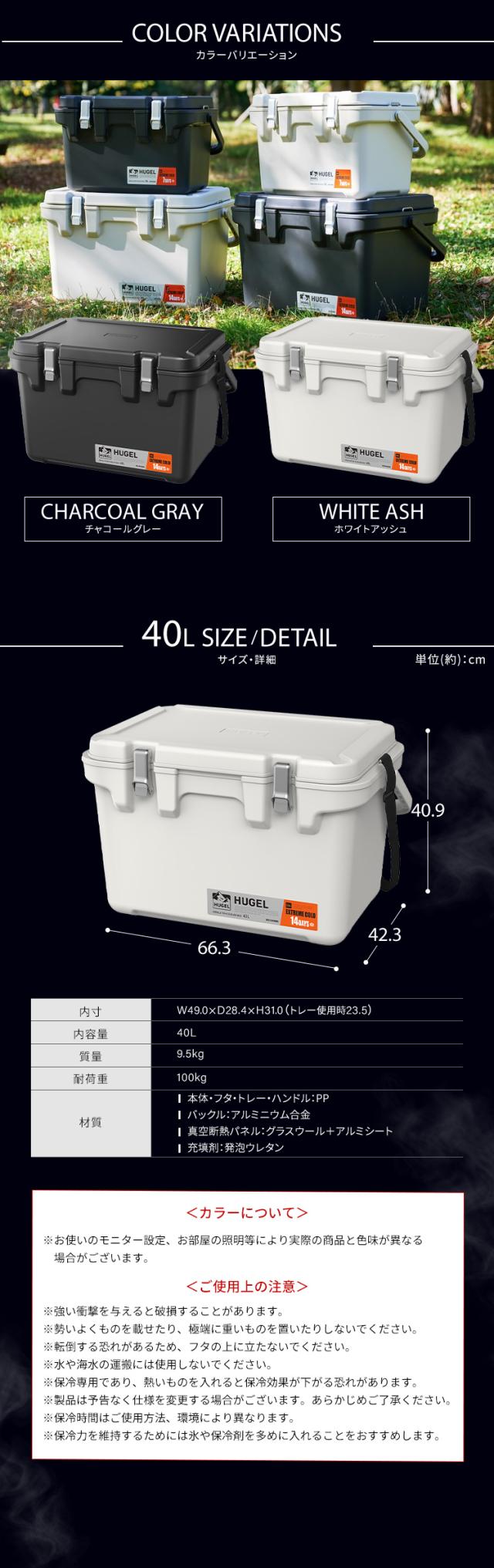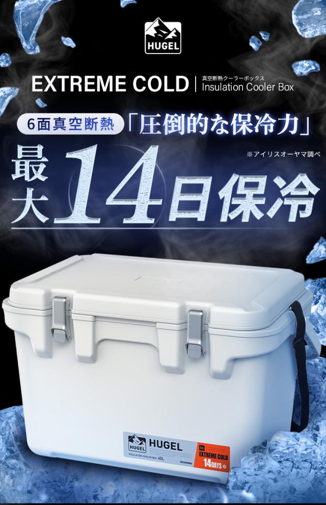 クーラーボックス 釣り 大型 40L 真空断熱 保冷力 最大14日 ハード キャンプ アウトドア レジャー バーベキュー スポーツ インナートレー ハンドル ショルダーベルト付 サイドテーブル 座れる 保冷ボックス クーラーBOX アイリスオーヤマ HUGEL VITC-40R *