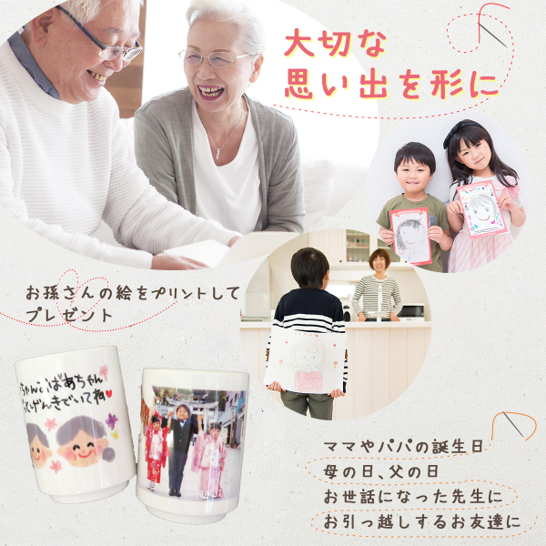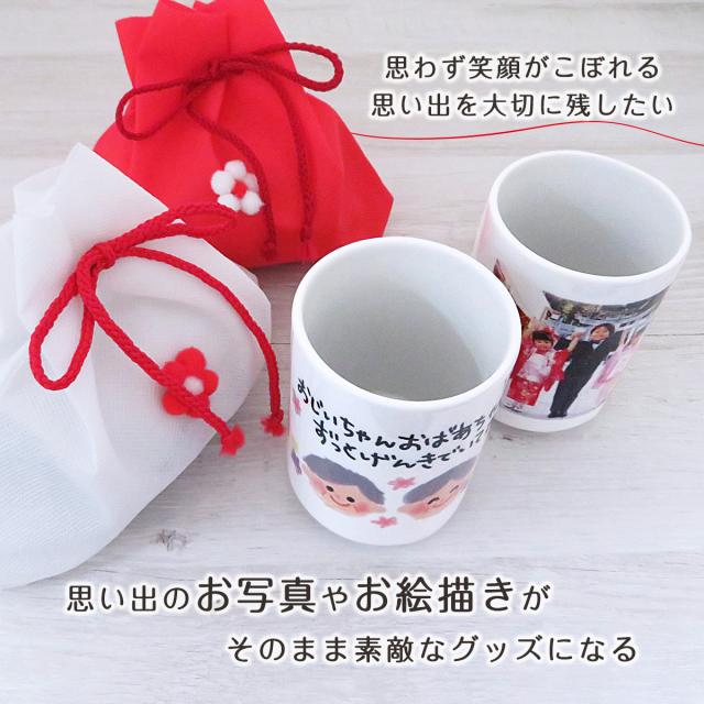 湯呑み ギフト お絵かき 写真 プリント 子供の絵 商品 母の日 父の日 おじいちゃん おばあちゃん 両親 親 プレゼント ゆのみ 女性 男性 メンズ レディース オーダー 男の子 女の子 記念日 誕生日 還暦 米寿 古稀 60代 70代 80代 オリジナル湯のみ 巾着袋付き