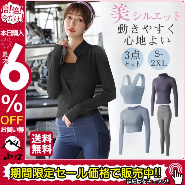スポーツウェア レディース 3点セット セットアップ ヨガウェア ランニングウェア ウォーキング トレーニング タイツ 長ズボン