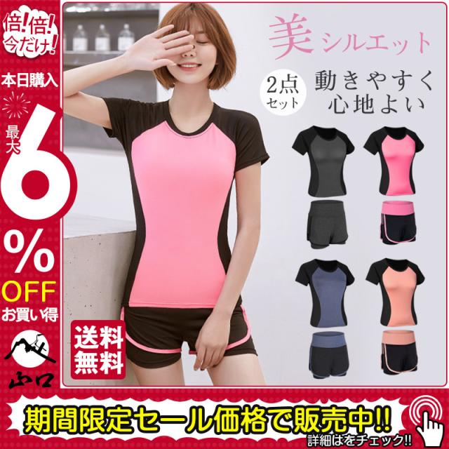 スポーツウェア レディース 2点セット セットアップ ヨガウェア ランニングウェア ウォーキング トレーニング ハーフパンツ フィ