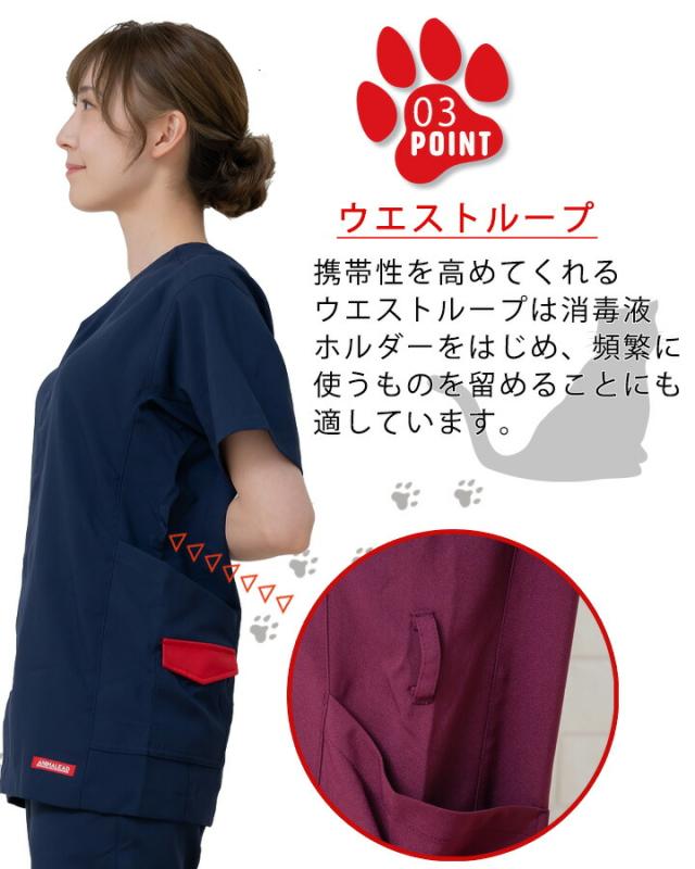 アニマリード スクラブ 前開きスクラブ 動物病院 獣医 トリマー 男女兼用 AL-0002 ANIMALEAD 医療白衣 ドクター 犬 猫【専用ウェア】ドクター ナース チトセ 術衣【送料無料】
