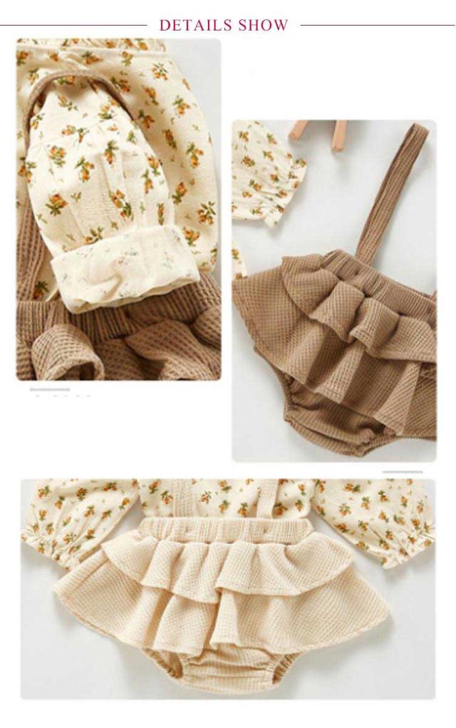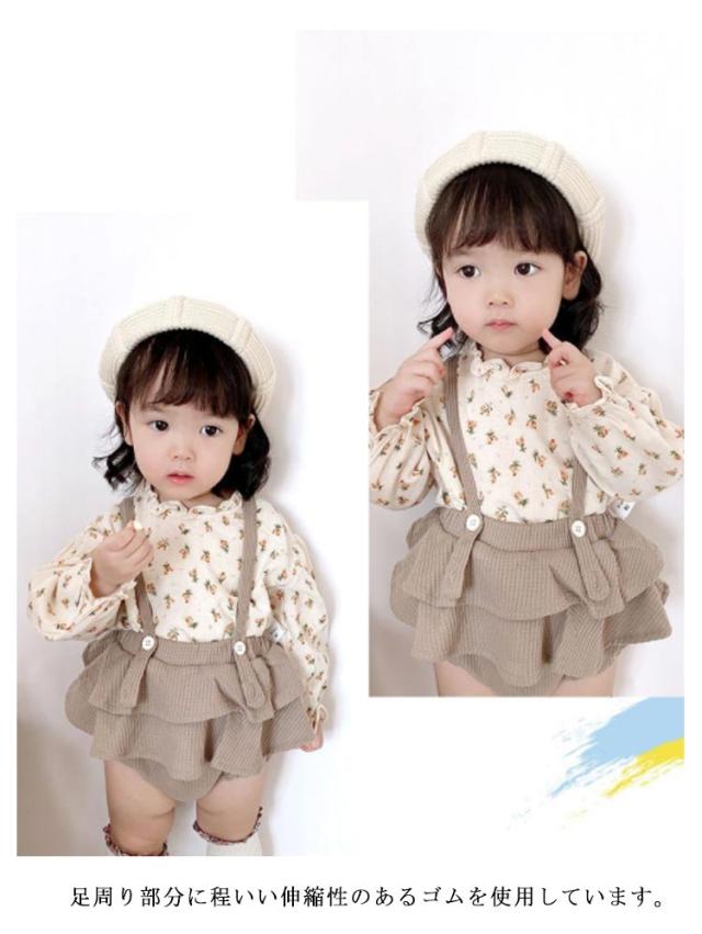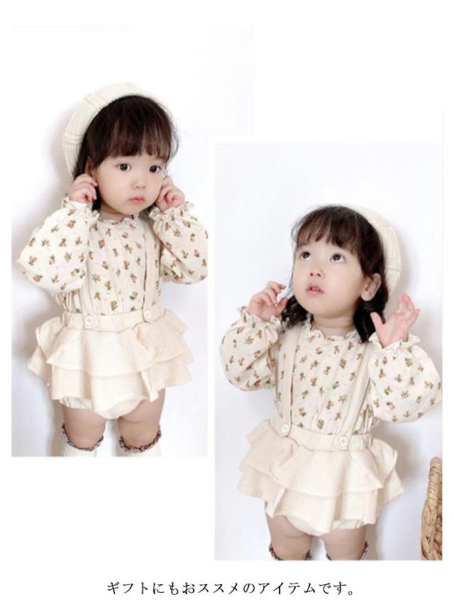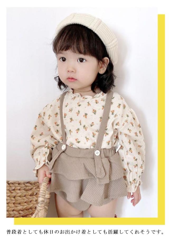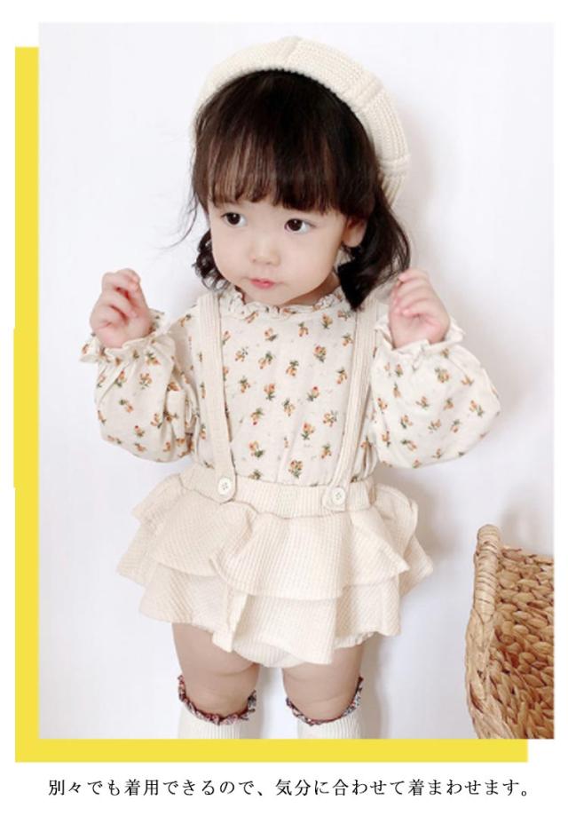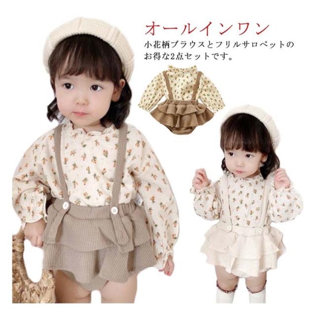 長袖ブラウス&サロペットセット 2点セット 女の子 フリルブラウス スカパン サロペット セットアップ オールインワン キッズ 小花柄 春 秋 全2色