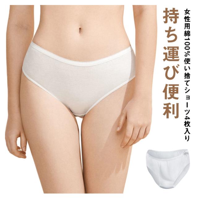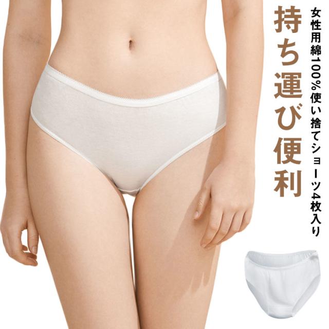 【送料無料】使い捨てショーツ 4枚セット 綿100% M/L/LL/2L 個包装 衛生的 レディース 使い捨て下着 使い捨てインナー ショーツ パンツ 生理用品 女性用 トラベルグッズ 旅行グッズ 旅行用 便利グッズ ホワイト 白