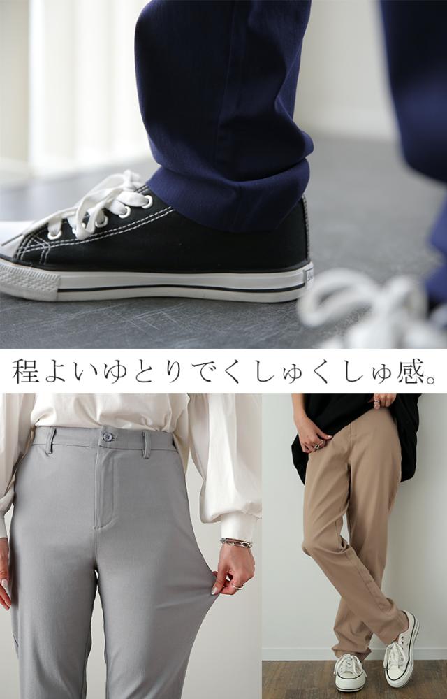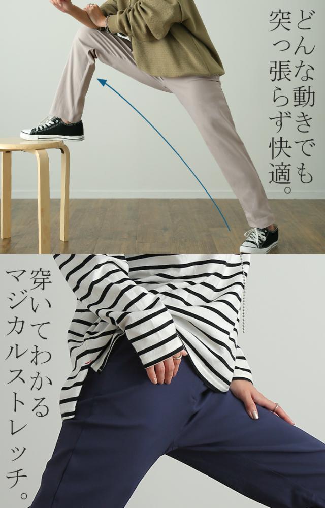 伸縮性抜群でラクな穿き心地のストレートパンツです。