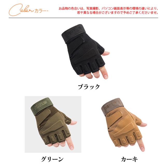 手袋 サイクリンググローブ 保護グローブ サイクルグローブ 指切り ミリタリー クッション性 無地 滑り止め付き トレーニング バ