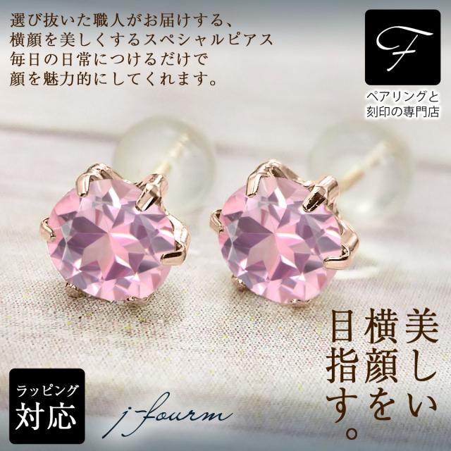 ピンクトルマリン ピアス 送料無料 K10 ピンクゴールド 5mm 薄型6本爪 スタッド シンプル 両耳ペア 宅配便