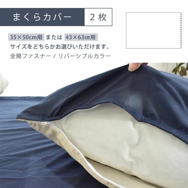 | 仕様 | 掛けカバー:全開ファスナー / 6ヶ所スナップボタン付き / 2ヶ所スリット付き / リバーシブルカラー 枕カバー:ファスナータイプ / リバーシブルカラー 敷きカバー:L字ファスナー / ダブルスライダー / リバーシブルカラー ボックスシーツ:敷き布団・ベッドマットレス兼用(厚み38cmまで対応) / 上下ゴム入り / 無地カラー |