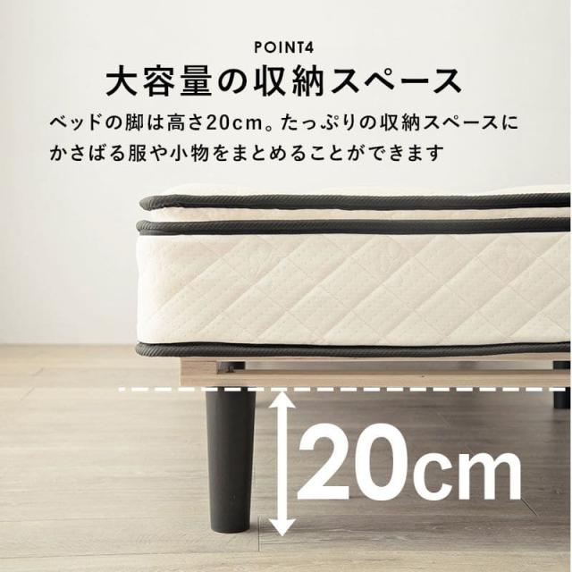 脚付きマットレス セミダブル マットレス ポケットコイル 高級 脚付き ホテル仕様 ベッド 男 一体型 厚め 柔らかめ すのこ 一人暮らし 脚 20cm 収納 195cm
