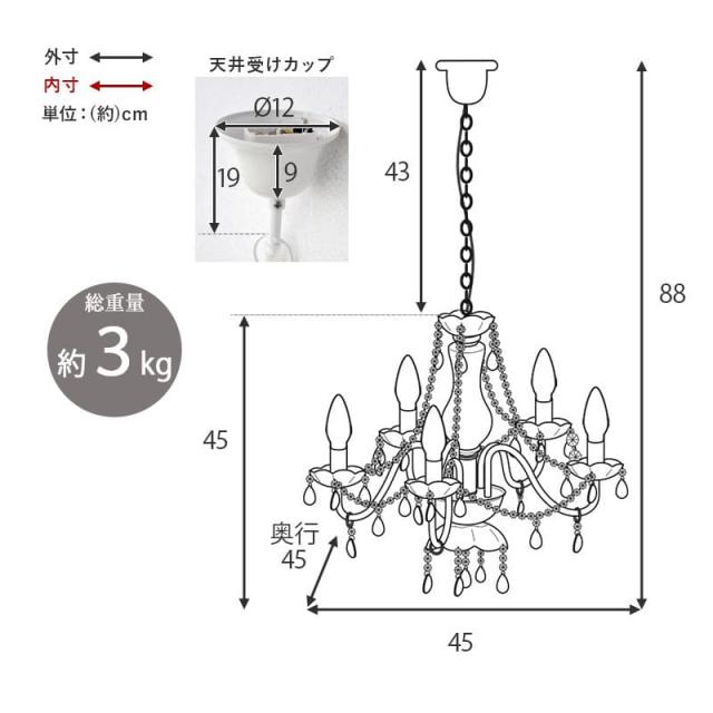(約)幅45×奥行45×高さ45cm (ソケット部+チェーン長さ:43cm)