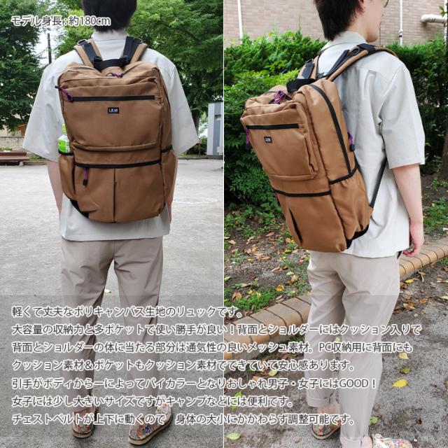軽くて丈夫なポリキャンバス生地のリュックです。