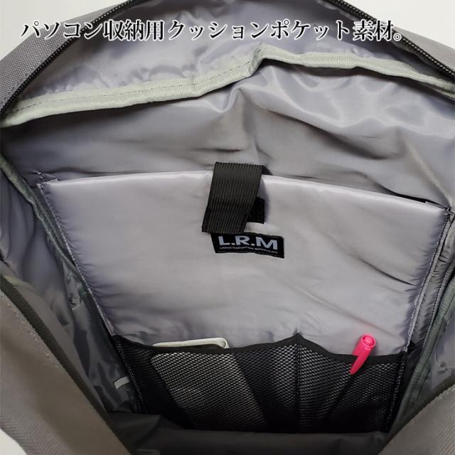 PC収納用に背面にもクッション素材&ポケットもクッション素材でできていて安心感あります。