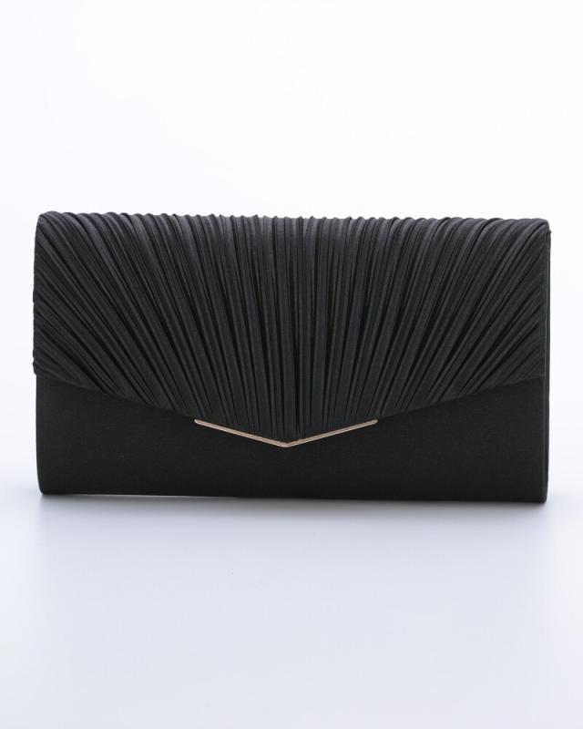 プリーツ加工をほどこしたサテン生地が上品なパーティーバッグ。
