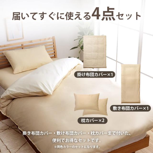 布団カバー セット ダブル 4点セット ダブルロング リバーシブル 選べる 「リバーシブル4点セット」 無地 シンプル 掛け布団カバー 敷き布団カバー 枕カバー 4点 リバカバー おしゃれ オールシーズン 丸洗い