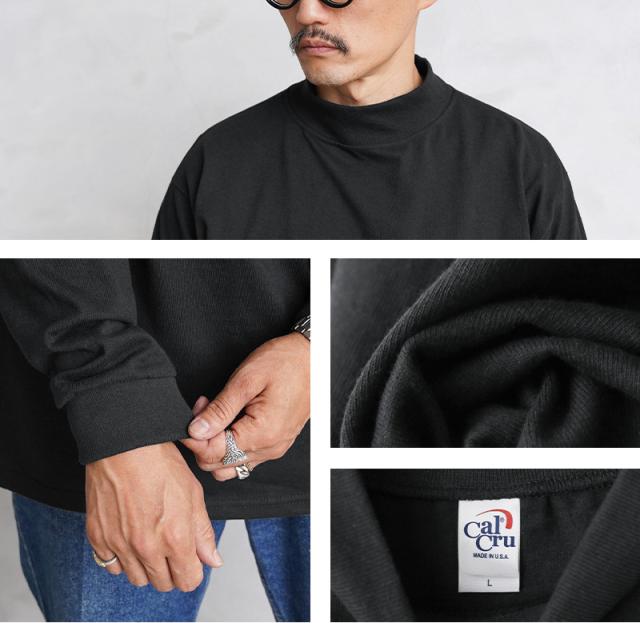 Cal Cru カルクルー CLCR-12LM SUPER HEAVYWEIGHT L/S モックネックTシャツ MADE IN USA【T】【Cx】|カットソー ハイネック メンズ トップス 長袖 ブランド おしゃれ 大きいサイズ 無地 綿100% 黒 白 グレー