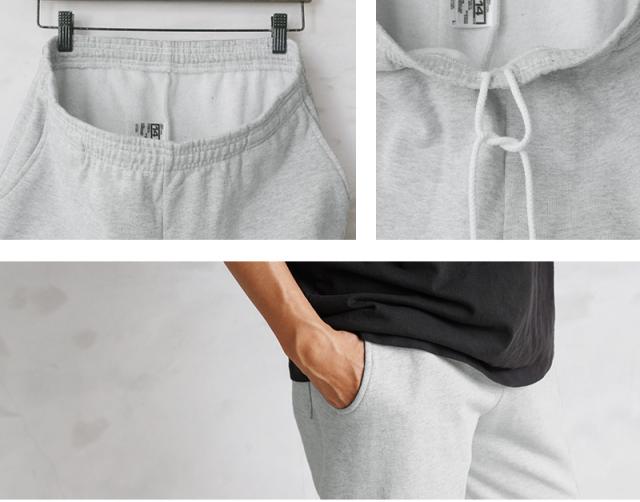 良質なコットン100%(ASHのみ混紡)を採用しているため、着込めば着込むほどに馴染み風合いの出てくる楽しみのある一枚です。また繰り返しの洗濯後も、型くずれしたり、縮んだりしにくいシュリンクフリーなので長く愛用していただけます。腰回りはゴムとドローコードでフィット感を調整。両サイドのハンドポケットに加え、ヒップの片パッチポケットがちょっとした収納に便利です。
