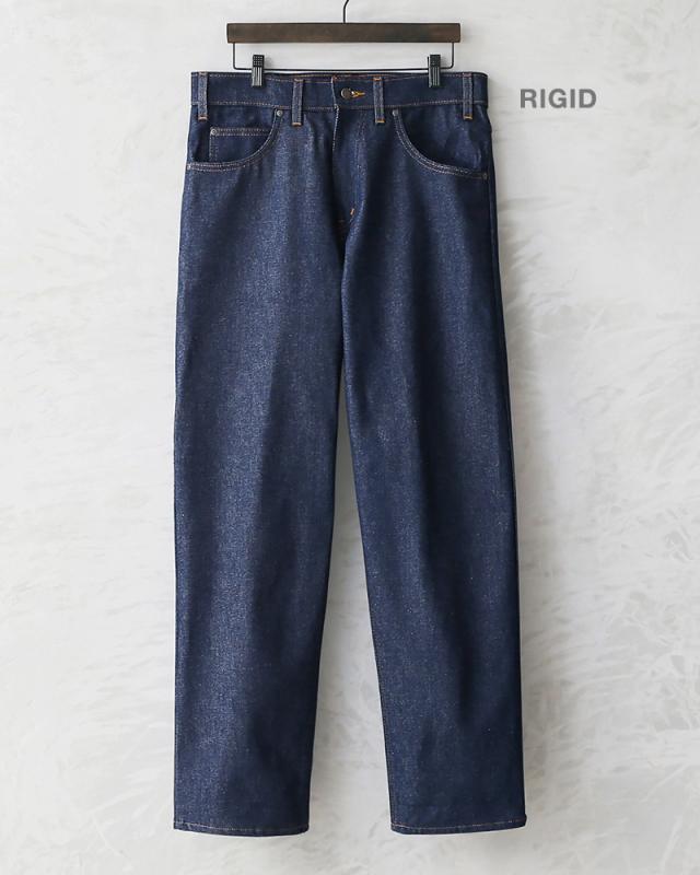 ※RIGIDは洗濯により3〜4%の縮みが発生します。洗濯の際の時間や水温などの状況により縮みは前後します。RIGIDのサイズ表記載の寸法は、水洗い前の寸法となります。乾燥機の使用は推奨しておりません。BLACKはワンウォッシュされておりますのでRIGIDの洗濯後はそちらのサイズが目安となります。