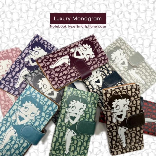 全機種対応 スマホケース キャラクター ベティー ブープ(TM) 手帳型 モノグラム スマホカバー ベティーちゃん 正規品 Betty Boop(TM) 送料無料