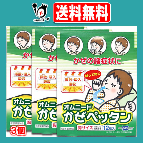 【指定医薬部外品】オムニードかぜペッタン 胸サイズ 12枚入×3個セット【テイコクファルマケア】かぜ用シート かぜの諸症状に貼って効く