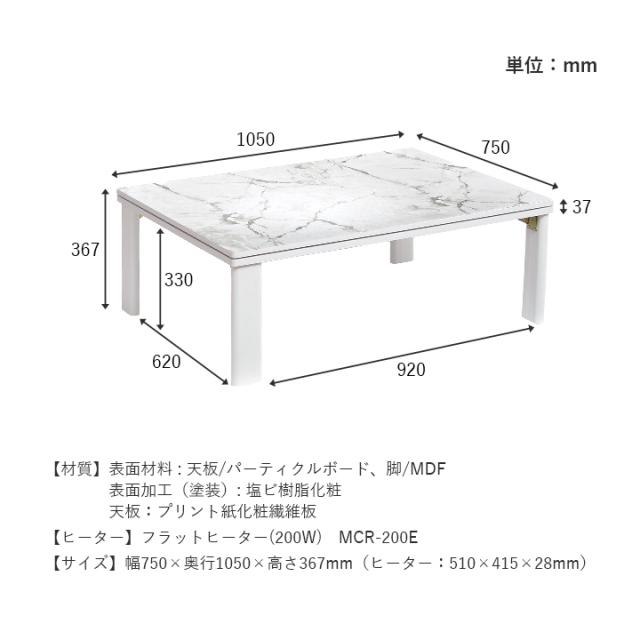 こたつ こたつテーブル 長方形 こたつ台 テーブル コタツ 「 アルト 」 大理石こたつ75×105cm 大理石風 おしゃれ センターテーブル フラットヒーター 韓国インテリア 海外風 一人暮らし 新生活