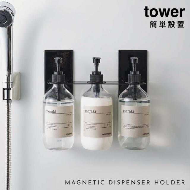ディスペンサーホルダー,シャンプーラック,吊り下げ,ディスペンサー,シャンプー,ボディーソープ,ハンドソープ,ボトル,マグネット,磁石,マグネット収納,マグネットラック,マグネット収納ラック,バスルーム,お風呂,浴室,風呂,お風呂用,バス収納,バス小物,壁,壁掛け,壁面,浮かせる,浮かせる収納,空中収納,簡単設置,収納ラック,収納,ラック,ホルダー,カビ,汚れ,ヌメリ,ぬめり,予防,防止,清潔,衛生的,汚れ防止,汚れにくい,tower,タワー,TOWER,ホワイト,ブラック,白,黒,モノトーン,山崎,yamazaki,生活感が出ない,すっきり,コンパクト,省スペース,シンプル,シンプルデザイン,スタイリッシュ,おしゃれ,お洒落,オシャレ,インテリア,雑貨,部屋,賃貸,マンション,アパート,自宅,家,新生活,引越,引越し,引っ越し,新築,新居,ベーシック,定番,普段使い,デイリーユース,親子,家族,ファミリー,片付け,整理整頓,アイデア,便利グッズ,便利アイテム,おすすめ,オススメ,人気,