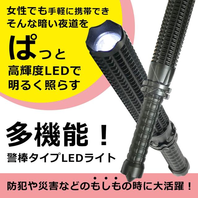 懐中電灯 LEDライト 明るい 高輝度 ズーム機能 警棒型 こん棒タイプ こん棒型 スパイプ付き 多機能 車内 緊急脱出 一人暮らし 防犯 夜間警備 災害時 痴漢撃退 護身用