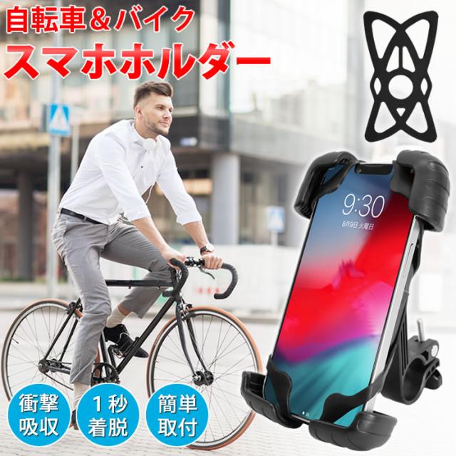 自転車 バイク スマホホルダー [1秒で着脱 360度回転 衝撃吸収 取付簡単 工具不要 シリコンバンド付き] 自転車用 バイク用 原付 ロードバイク オートバイ バイクホルダー スマホスタンド スマホ ホルダー 自転車ホルダー 携帯ホルダー LAD WEATHER ラドウェザー