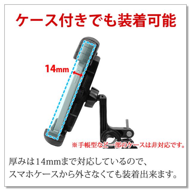 厚みは14mmまで対応しているので、スマホケースから外さなくても装着出来ます。