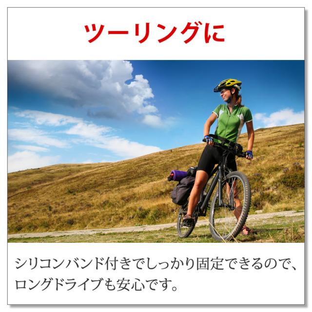 シリコンバンド付きでしっかり固定できるので、ロングドライブも安心です。