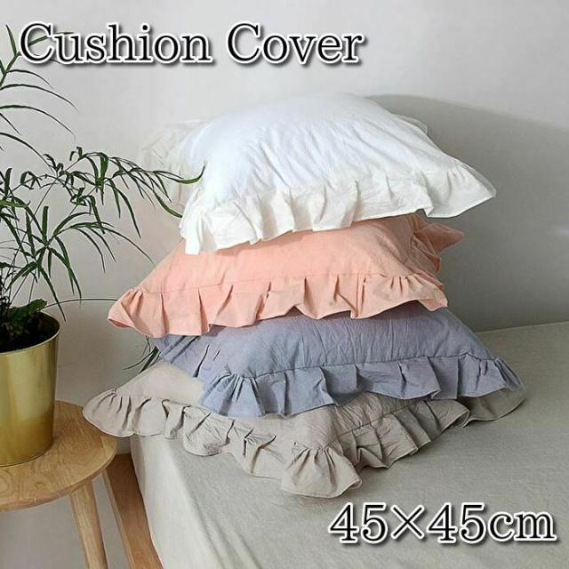 クッションカバー 45×45cm おしゃれ かわいい ふりる ナチュラル コットン フレンチシャビー シャビー フレンチ クッション カバー 45×45 北欧 無地 送料無料 クーポン対象