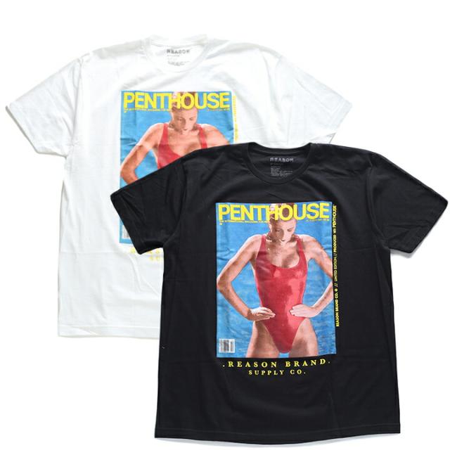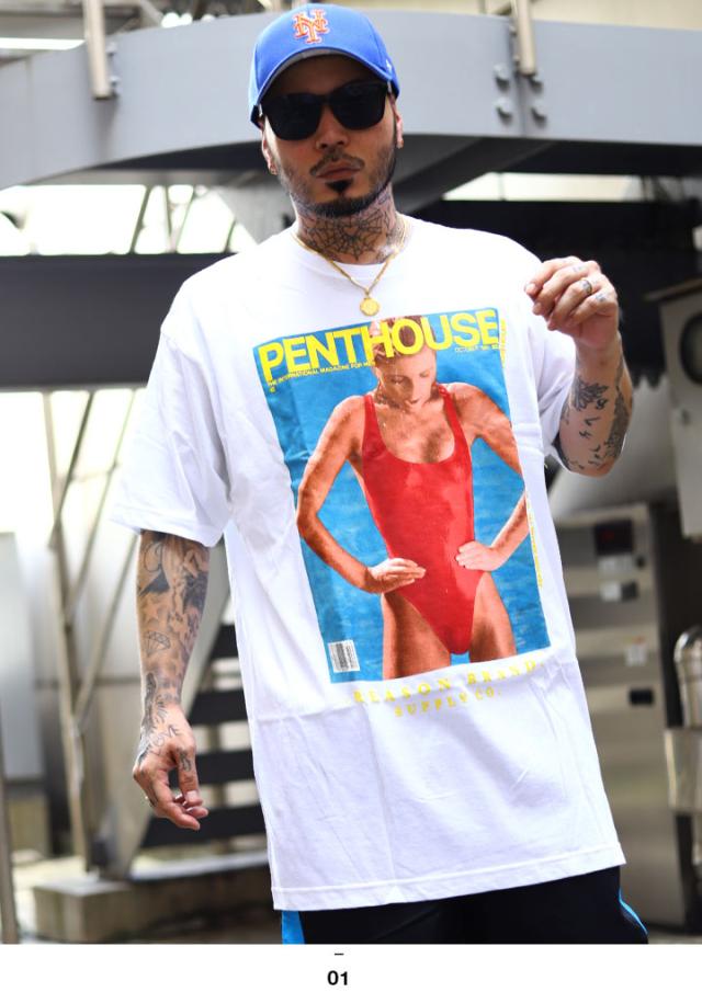 【80%OFF】REASON x Penthouse 公式 Tシャツ 半袖 メンズ レディース 白 黒 大きいサイズ ビッグシルエット リーズン ペントハウス 限定コラボ イギリス雑誌 セクシー 水着 美女 ボックスロゴ B系 ヒップホップ U1-306