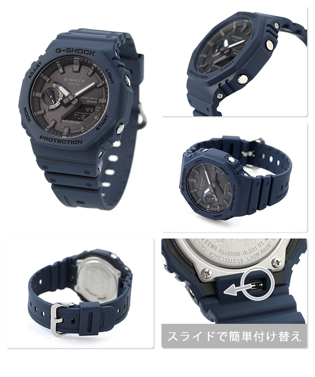 7年保証キャンペーン カシオ Gショック アナログデジタル 2100シリーズ Bluetooth ソーラー メンズ 腕時計 GA-B2100-2ADR CASIO G-SHOCK ANALOG-DIGITAL 2100 SERIES アナデジ ブラック ネイビー 黒 ◆初代G-SHOCKのデザインコンセプトを受け継いだGA-2100の八角形フォルムはそのままに、スマートフォンリンクとタフソーラーを搭載しました。高機能化に伴う部品点数の増加に対応するため、基板配置を最適化した薄型モジュールを開発。カーボンコアガード構造と組み合わせることで、従来モデルのサイズ感をキープしています。ケース・バンドのカラーは、5600シリーズに初採用された“ファーストカラー”のブルーを復刻しました。シーンを問わずお使いいただけるカラーがポイントです。プレゼントにもオススメです。 国内モデル品番:GA-B2100-2AJF