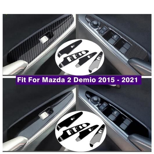 ドア アームレスト ウインドウ ガラス リフト ボタン コントロール パネル カバー トリム 適用: MAZDA2 デミオ 2015-2021 右ハンドル用 カーボン インテリア アクセサリー AL-PP-0463 AL