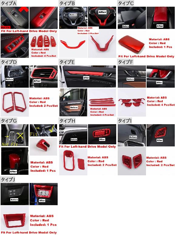ガラス リフト ボタン ステアリング ホイール アームレスト ボックス パネル ドア ストリップ ハンドル ボウル エア AC カバー キット 適用: ホンダ アコード 10世代 2018-2022 タイプE AL-PP-0372 AL