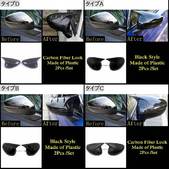 AL ブラック/カーボンファイバー アウトサイド ドア バックミラー ミラー キャップ ケース カバー トリム 適用: ホンダ シビック タイプA・タイプB AL-PP-0286 タイプ: タイプA タイプB