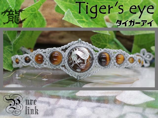 金色の神眼『タイガーアイ』五爪銀龍マクラメ編みブレスレット