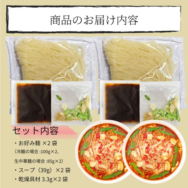 冷麺(麺100g×2袋、つゆ39g×2袋、乾燥具材3.3g×2袋