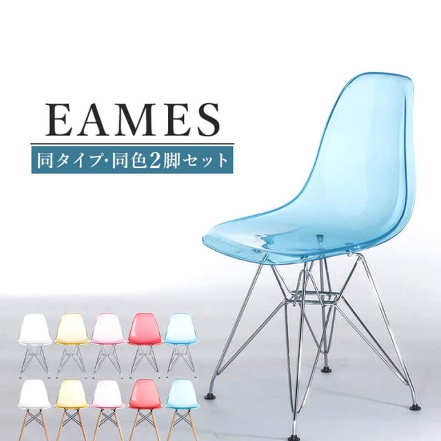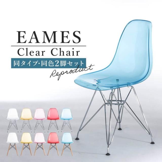 イームズチェア リプロダクト クリアタイプ 2脚セット 木脚 スチール脚 DSR DSW イームズシェルチェア シェルサイドチェア ダイニングチェア デザイナーズチェア デザイナーズ家具 椅子(代引不可)【送料無料】