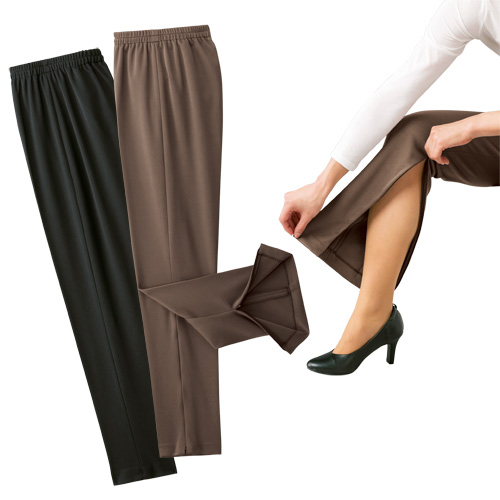 秋冬 日本製 らくらく快適膝だしパンツ(2色組) 選べる股下丈 長ズボン レディース 婦人服 ミセス シニア 女性 裾ファスナー シニアファッション 50代 60代 70代 80代 母の日 お母さん fri p20556