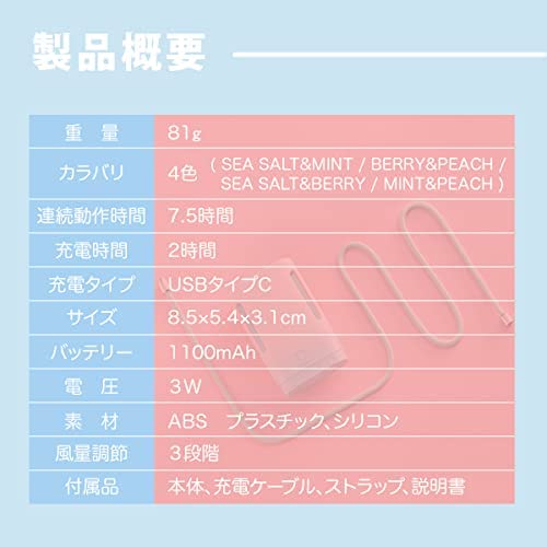 首掛け扇風機 ジェリーファン 4色 7時間 ハンディファン 卓上扇風機 (SEA SALT & MINT)